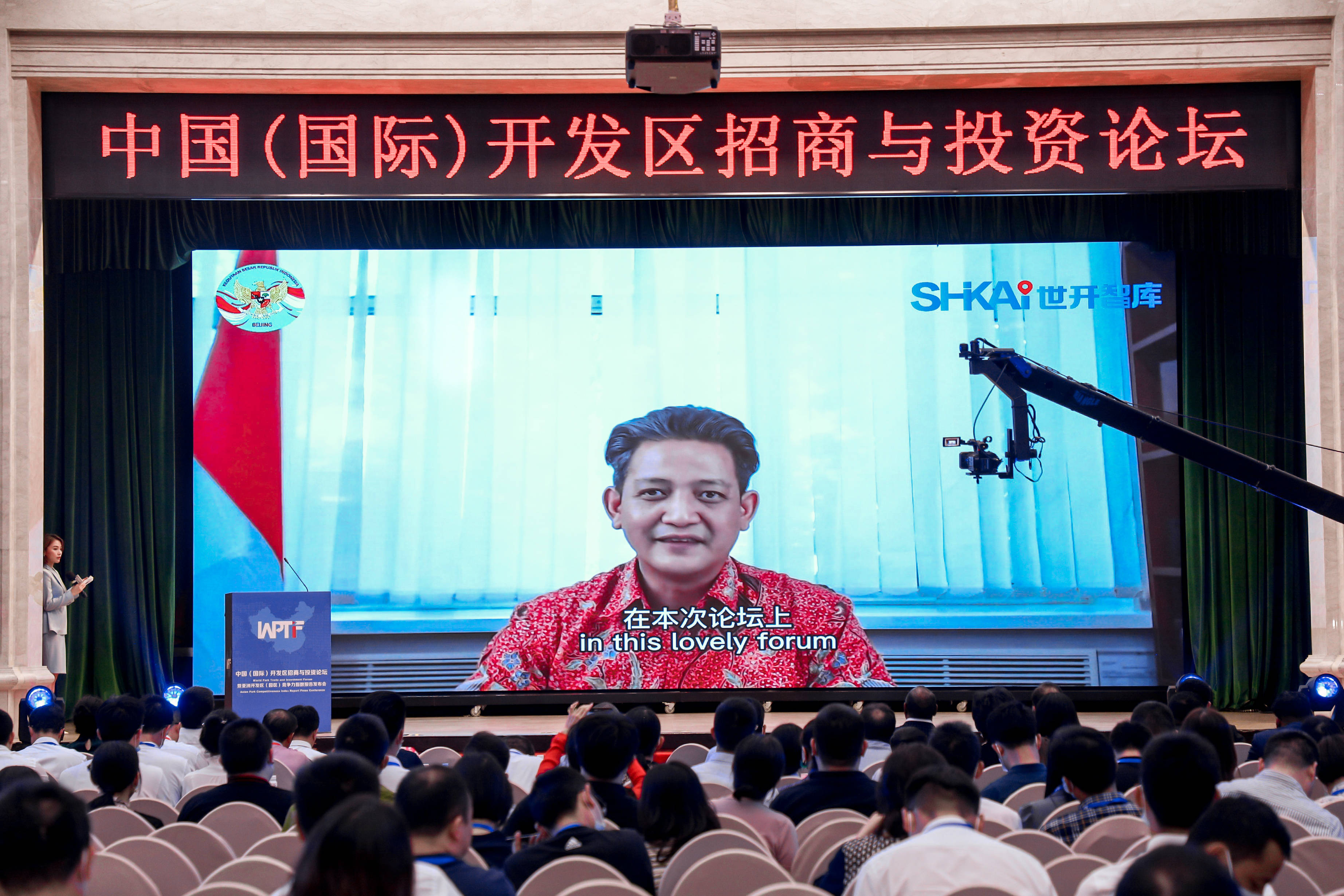 接下来的国内外区域经济代表和企业推介宣讲,包含重庆市区块链数字经济产业园管委会党组书记主任薛俨、山西省投资促进局党组书记局长杨春权、汉中经济技术开发区管委会副主任袁俊海、鸿蒙能源(山东)有限公司董事长祝学忠,以及来自斯里兰卡驻华使馆公使衔参赞Alexi Gunasekera、孟加拉国驻华使馆经济参赞贾汗吉尔、印度尼西亚驻华使馆公使狄诺等发言。